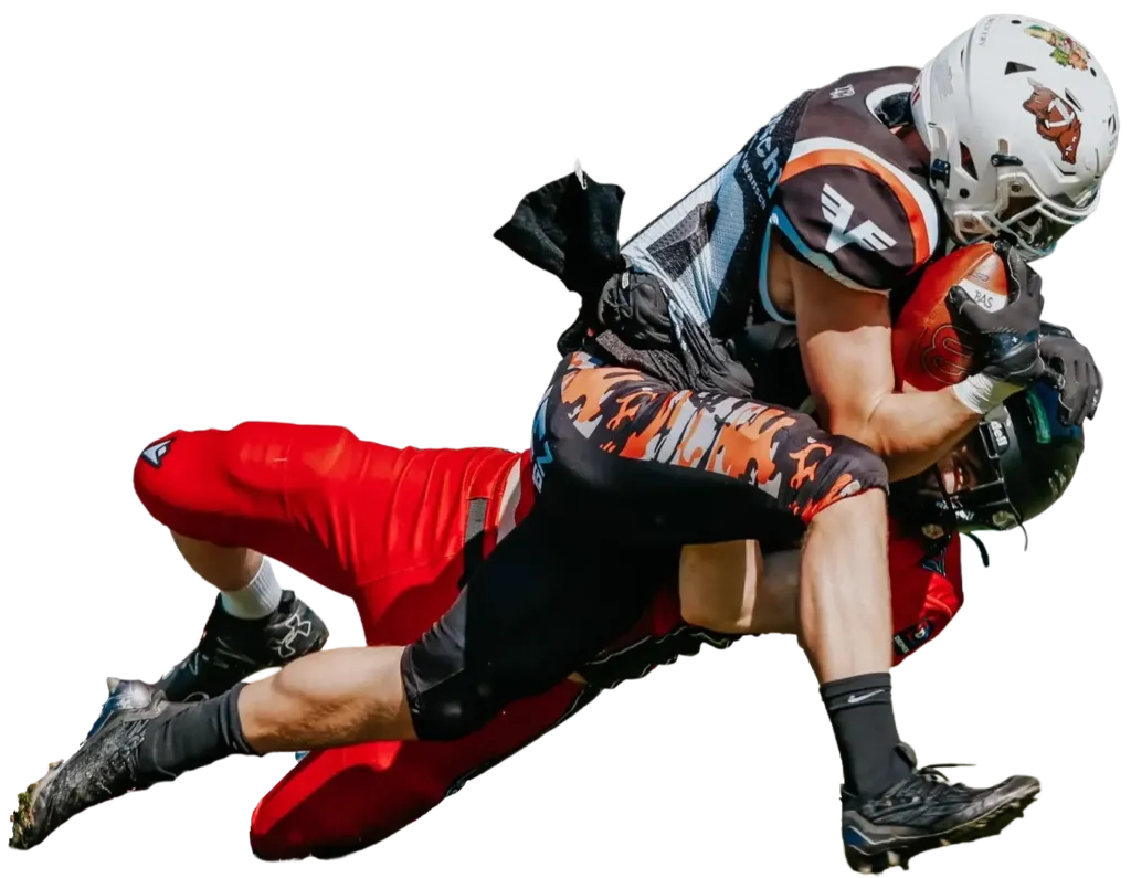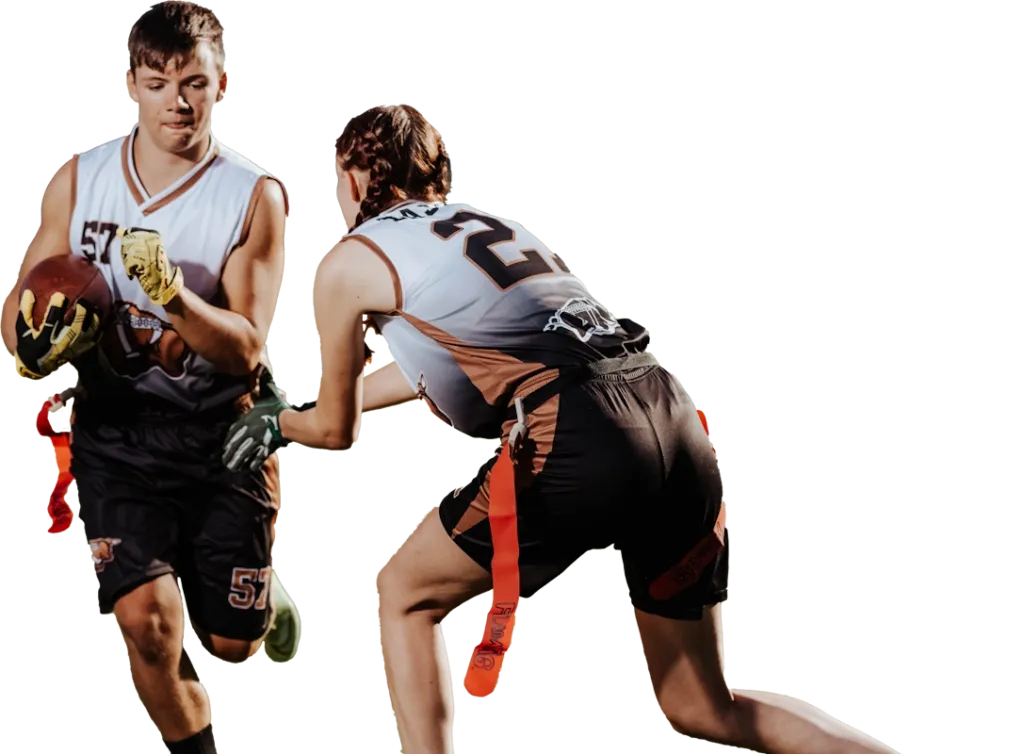 Flag Football ist die kontaktlose Variante von American Football. Statt den Gegner mittels Tackle aufzuhalten, wird hier einfach eine Flagge vom Gürtel gezogen. Das Spielprinzip bleibt ansonsten gleich: Bälle werfen/fangen, laufen und Touchdowns erzielen, perfekt für unsere Kids!