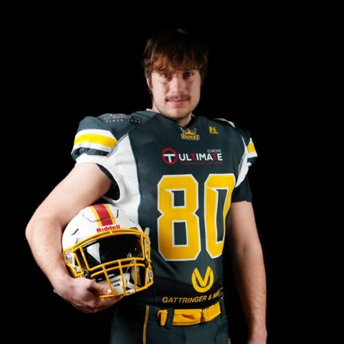 HC. Andreas BaumannDC. Matthias MairhoferOL. Gerald FeilmayrOC. Lukas Kerschbaummayr0. Elias Dorninger1. Florian Rainer2. Benjamin Liedlbauer3. Jakob Zeitlhofer4. Fabian Jungwirth5. Andreas Groismaier8. Umut Mazlum10. Moritz Wieser11. Johannes Obruca16. Andreas Knapp17. Manuel Vielhaber18. Michael Neudorfer21. Konstantin Laaber22. Manuel Siebenhandl24. Leo Lukas Spreitzer26. Daniel Hummel27. Alexander Hall28. Andreas Heigl29. Daniel Engl31. Jakob Seibezeder34. Bence Hegedüs37. WINTER40. Matthias Steinparzer43. Jonathan Laaber50. Christian Eder51. Thomas Gassner52. Lukas Stoll53. Manuel Schahud54. Mathias Geissberger55. Jürgen Robl57. Rene Strunz59. Bernhard Aigner60. Patrick Bauer61. Thomas Reitbauer62. Mathias Haselsteiner63. Nikolay Ignatov65. Dominik Sulzbacher66. Yanik Stütz67. Franz Theuretzbacher68. Moritz Halmich70. Günther Prinz73. HAAS74. Lukas Hofer76. Thomas Eglhofer79. Dietmar Schaufler80. Gabriel Tanzer87. Florian Schimpl99. Hannes Aigner #80NameGabriel TanzerPositionWide Receiver